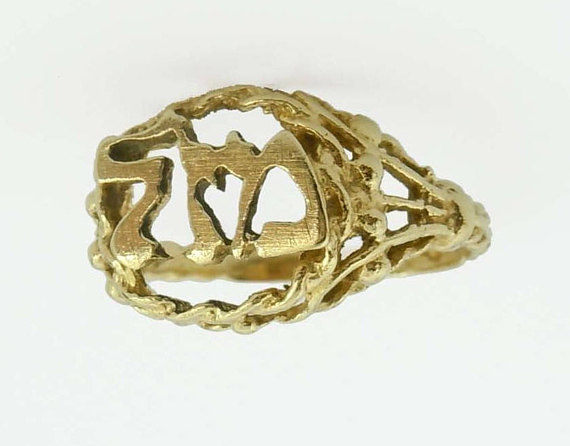 Vintage 14kt Gold Open Work Mazel Tov Good Luck Ring, centered with Hebrew letters that read, "MAZEL" for good luck and comes with the as seen gift presentation box and would make an impressive gift to someone special.