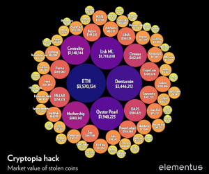 But data firm Elementus has since started to , including figures revealing how much was taken, which it claims to be around $16 million in ethereum (ETH) an ERC20 tokens. The company told news.bitcoin.com that this hack was particularly unusual as the theft was conducted in a number of small operations using a number of wallets.