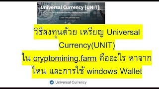 วิธีลงทุนด้วย เหรียญ Universal Currency(UNIT)ใน cryptomining.farm คืออะไร หาจากไหน และการใช้ windows Wallet