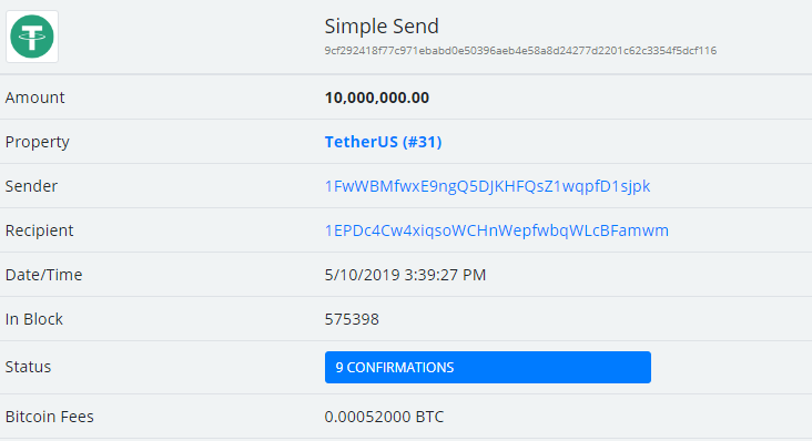The first transaction transferred 10 million USDT from 1FwWBMfwxE9ngQ5DJKHFQsZ1wqpfD1sjpk to 1EPDc4Cw4xiqsoWCHnWepfwbqWLcBFamwm. The sender had a balance of 22 million USDT, while the receiver had zero balance and this transaction took place on the Omni Explorer.