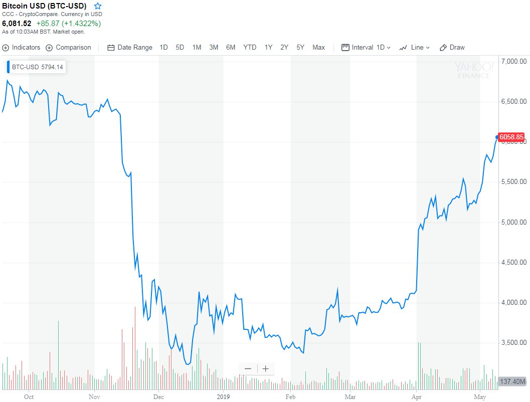 bitcoin breaks above $6,000 | Source: Yahoo Finance