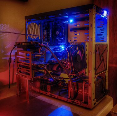 The Corsair CX600 power supply has done its job admirably but with the heat from the video cards constantly running full bore as well as environmental issues a 600 watt PSU is very inefficient with no overhead to do relevant overclocking. The PSU was then relocated and inverted for access to cool air. The only component failure experienced so far is a fan hung above the PSU after a maintenance shutdown of several hours. This was probably due to the fan’s grease aged to the point of being effective only at warm temperatures.