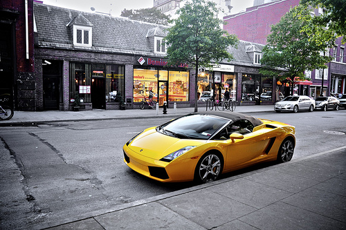 While I was shooting this car, a guy on a bike literally crashed into a street lamp while gawking at the thing. I heard this crash and went over to help the guy but he brushed himself off and went over to inspect the car. Power of a Lamoborghini!