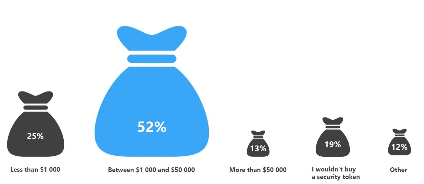 52% of all respondents would invest between $1 000 and $50 000 in a tokenized property; 19% are not interested in such investments