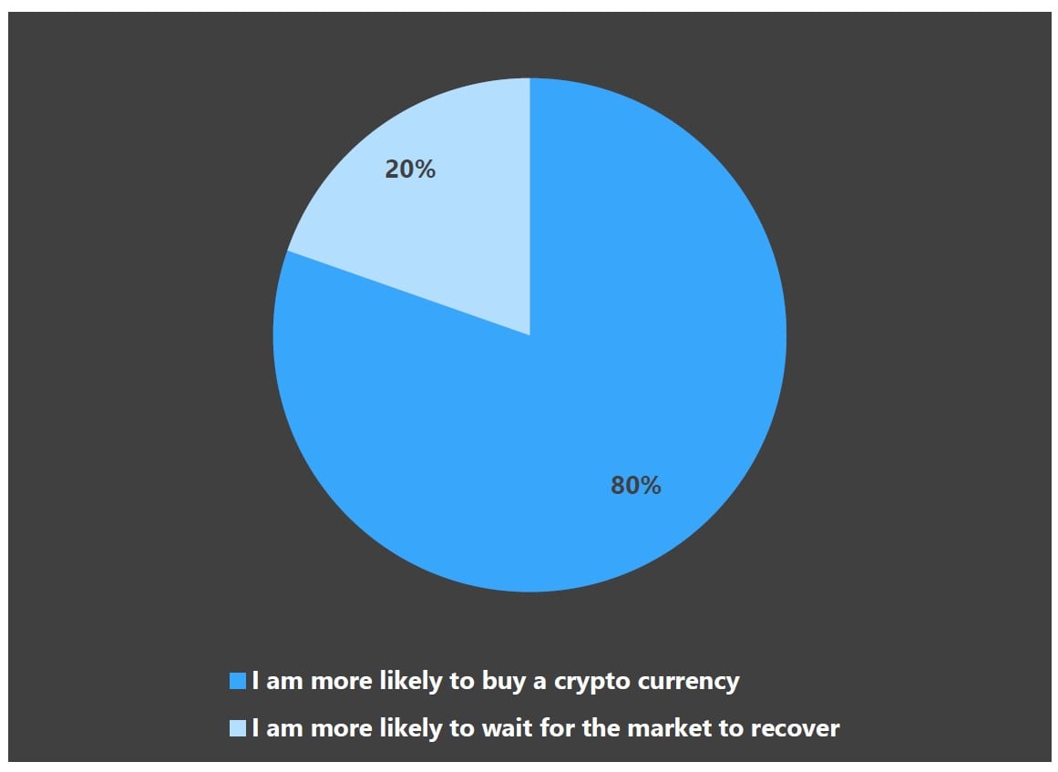 80% of the respondents are more likely to buy a crypto currency when the crypto market is down.
