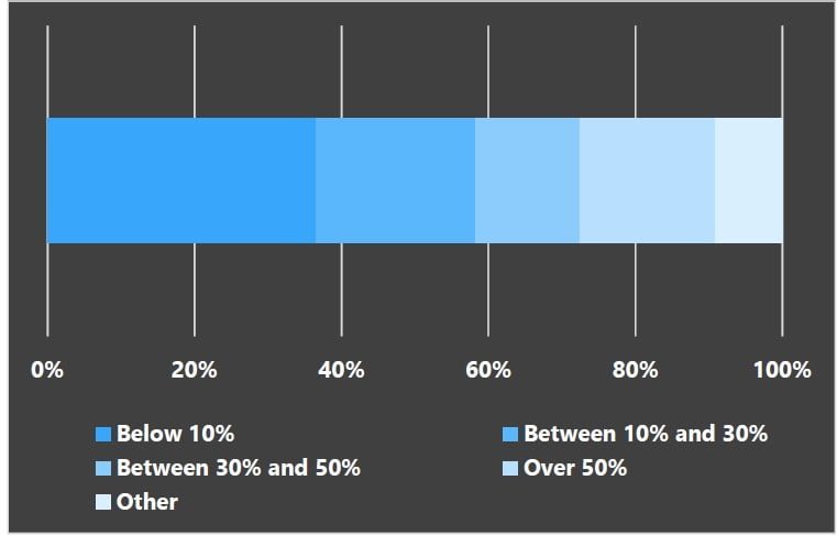 Most of the respondents hold at least one of the following cryptocurrencies: bitcoin, Ether, XRP. Only 10% either do not have any savings in crypto or do not know the exact portion. 18% hold all their savings in crypto.