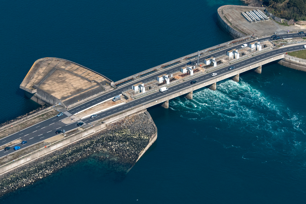 Tidal barrage: Tidal barrages use the potential energy found in the difference between low and high tides to generate electricity.