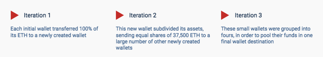 “Following the money, we discovered that these transactions didn’t settle in the first wallets but underwent 313 before eventually landing in 39 wallets.”