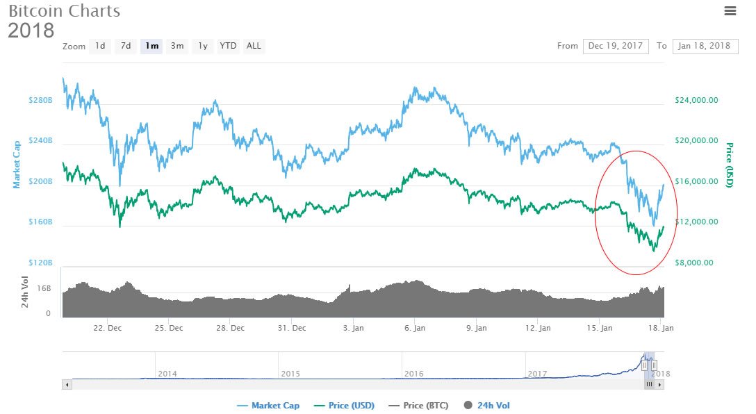 There are a number of reasons why the markets crash in January, and many originate in Asia where the bulk of crypto trading occurs. According to Coinmarketcap, which no longer includes , the total market capitalization of all cryptocurrencies fell from $750 billion to $420 billion in four days. At the time of writing, they have and are on the way back up again, currently sitting at a total of $575 billion.