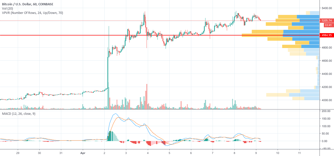 Despite the sales on Monday morning, the price of was able to hold above $5,100.