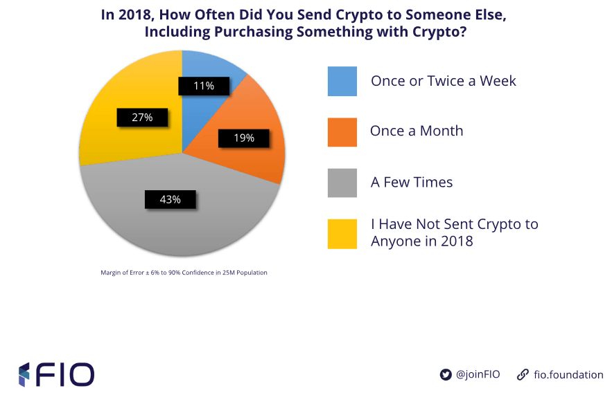 Just 11% of crypto users made a transaction at least once a week during 2018. | Source: Foundation for Interwallet Operability