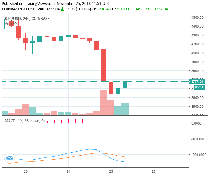 Following BTC’s expected drop below the $4,000 mark, traders became more comfortable in finding a short-term bottom in the price trend of BTC.