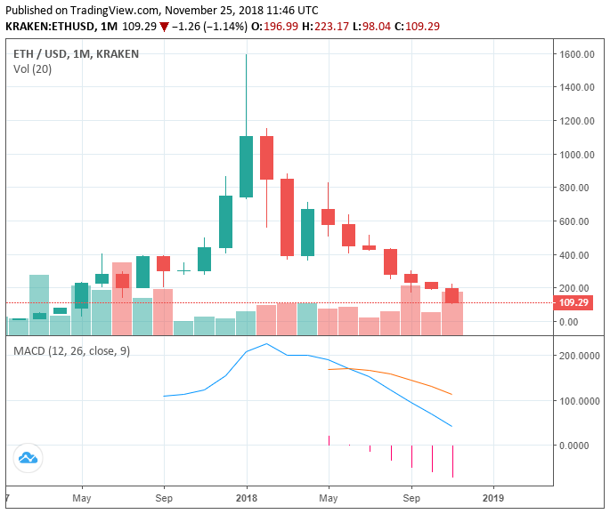 , which is currently demonstrating a that is larger than that of Ripple (XRP) and bitcoin Cash (BCH) combined at $2.2 billion, dropped to $98, falling to a double-digit for the first time since May 2017.