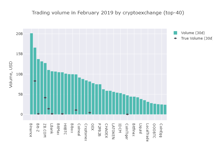 Integrity its February report earlier this week, which outlined the presence and veracity of “fake volumes in cryptocurrency markets.” The pseudonymous team explains that there’s a high likelihood that 88% of all trading volume seen on exchanges during February, which was when tumult in bitcoin markets returned, is entirely false.