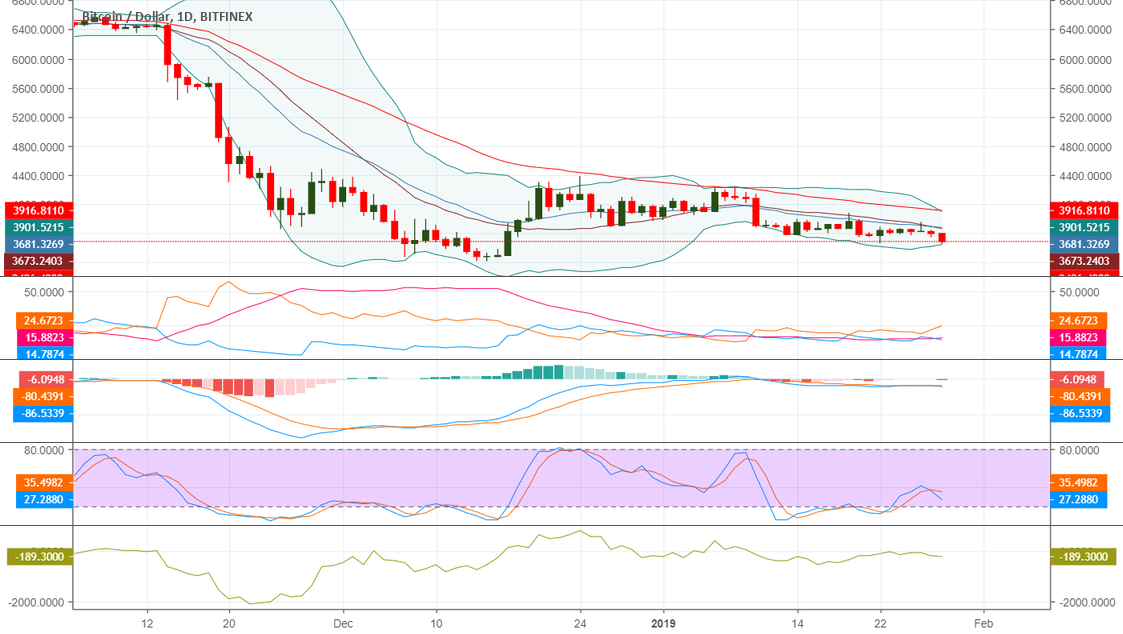 There’s been a new wave of selling over the weekend which took well below the $3,500 mark.This makes for an overall drop of 3.30% for the last 7 days (aggregate data, CoinMarketCap). Currently trading at $3,407 on Coinbase, is rapidly approaching oversold levels as indicated by the .