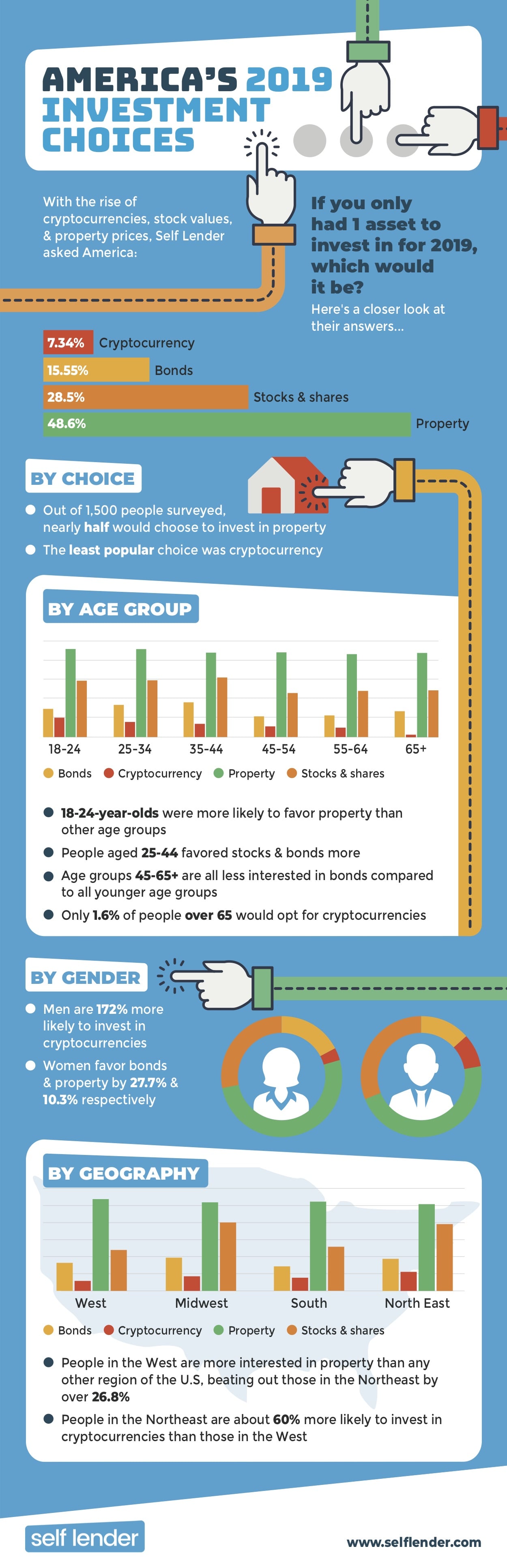 To illustrate the speculative nature of cryptocurrencies, whilst in 2017 bitcoin rewarded its backers with , the digital asset has since retracted in value by more than 80%. The Self Lender study also found that stocks and shares were the second most popular investment choice, with 28.5% of those surveyed selecting this as their number one asset class.