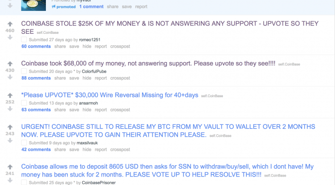 Reddit user crypt_iss complained about a botched transaction in a that was heavily upvoted on Coinbase’s subreddit. As of last week, he said he has “technically withdrawn” the amount but it is still not in his Coinbase vault. Yet Coinbase shows the transaction as completed in one location and pending in another, he says.