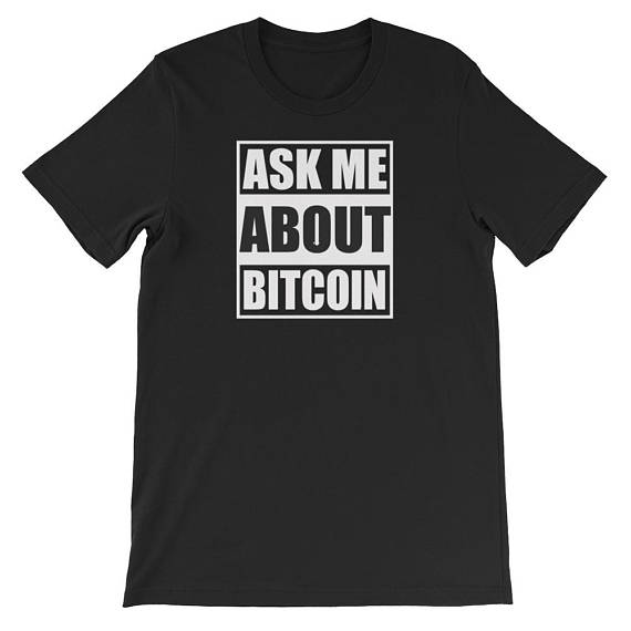 Then our "Ask Me About bitcoin" t-shirt is perfect for you!