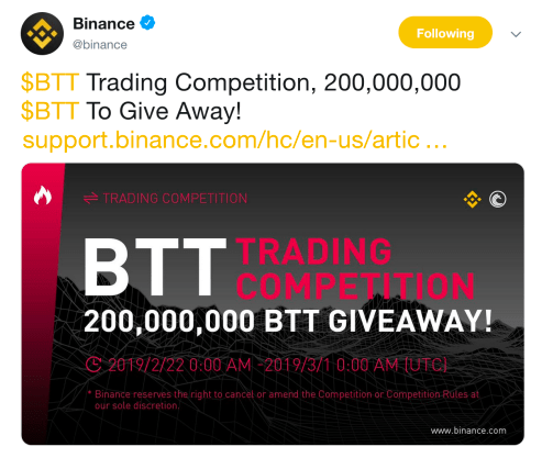stated that the competition is being hosted to celebrate the successful launch of the BTT and the team committed a total of 200,000,000 BTT in prizes. has divided the giveaways into four categories, including Deposit Promotion, Competition, Reward Calculation, and Lucky Draw. The competition will start on February 22 and will go on till March 1.