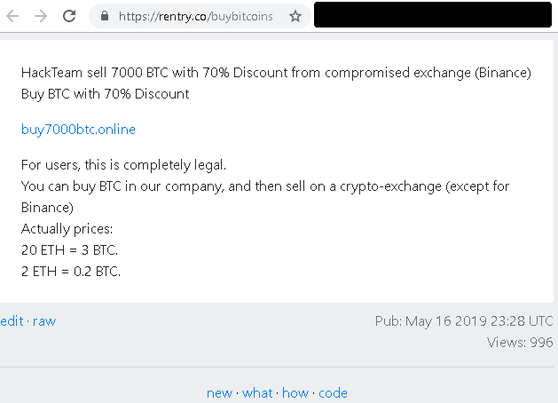 Even though the funds have not been recovered yet, another scam seems to be brewing in the shadow of these funds. A Reddit user suggested on the r/Cryptocurrency subreddit that the ‘team’ that hacked Binance was selling the stolen 7,000 BTCs, with a 70% discount.