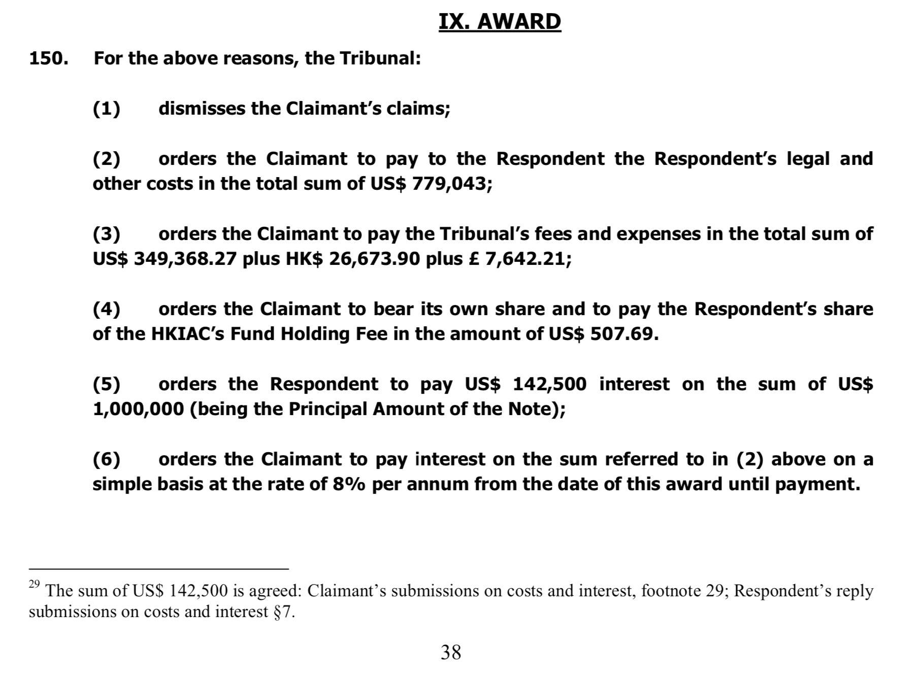 “The Hong Kong courts later determined that Sequoia’s actions in obtaining the injunction were an abuse of process. Late last year, the arbitration tribunal finally determined that all of Sequoia’s claims were completely without merit.”