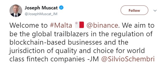 While countries like Poland and even Japan are making it difficult for cryptocurrency exchanges to run their businesses, Malta is rolling out the welcome mat, as evidenced by Prime Minister Joseph Muscat’s tweet in response to Binance’s announcement.