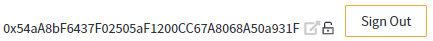 Once you have unlocked your , the currently selected account in MetaMask will be read by the platform and will be displayed at the top of the screen (with an ‘unlocked’ icon), so you are always aware of which account is being used by the platform. Should you change the current account in MetaMask, it will automatically be changed on the platform too. You can disconnect the platform from MetaMask at anytime by clicking on the ‘Sign Out’ button.