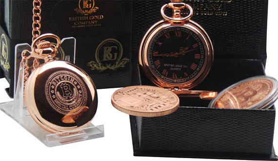 AND 18k Rose Gold Clad Pocket Watch in Luxury box Certificate Full Hunter & chain Engraved Virtual Digital Currency Gifts Business