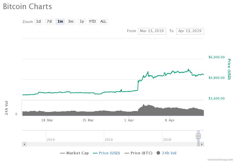 On April 12, bitcoin experienced an 8 percent fall from over $5,400 to around $4,950 in most major crypto markets, demonstrating a relatively large retracement.
