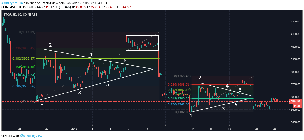 The price of bitcoin $BTC is currently in a consolidation phase after formation of a recurring pattern twice within the span of a month. The current price of bitcoin $BTC, at the time of writing, was $3,580, with the market cap hovering at $63 billion.