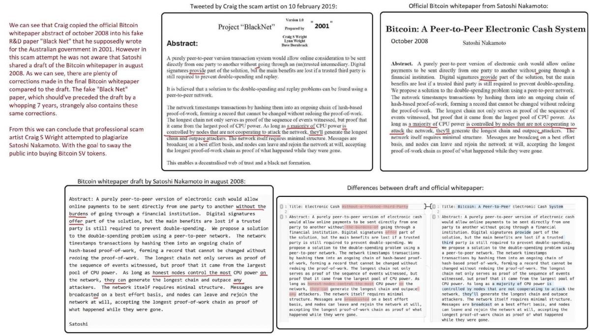 “So if Craig Wright claims to have written the paper in 2001, why does it contain the same corrections as the ones made between the August and the October versions of Satoshi’s white paper?”