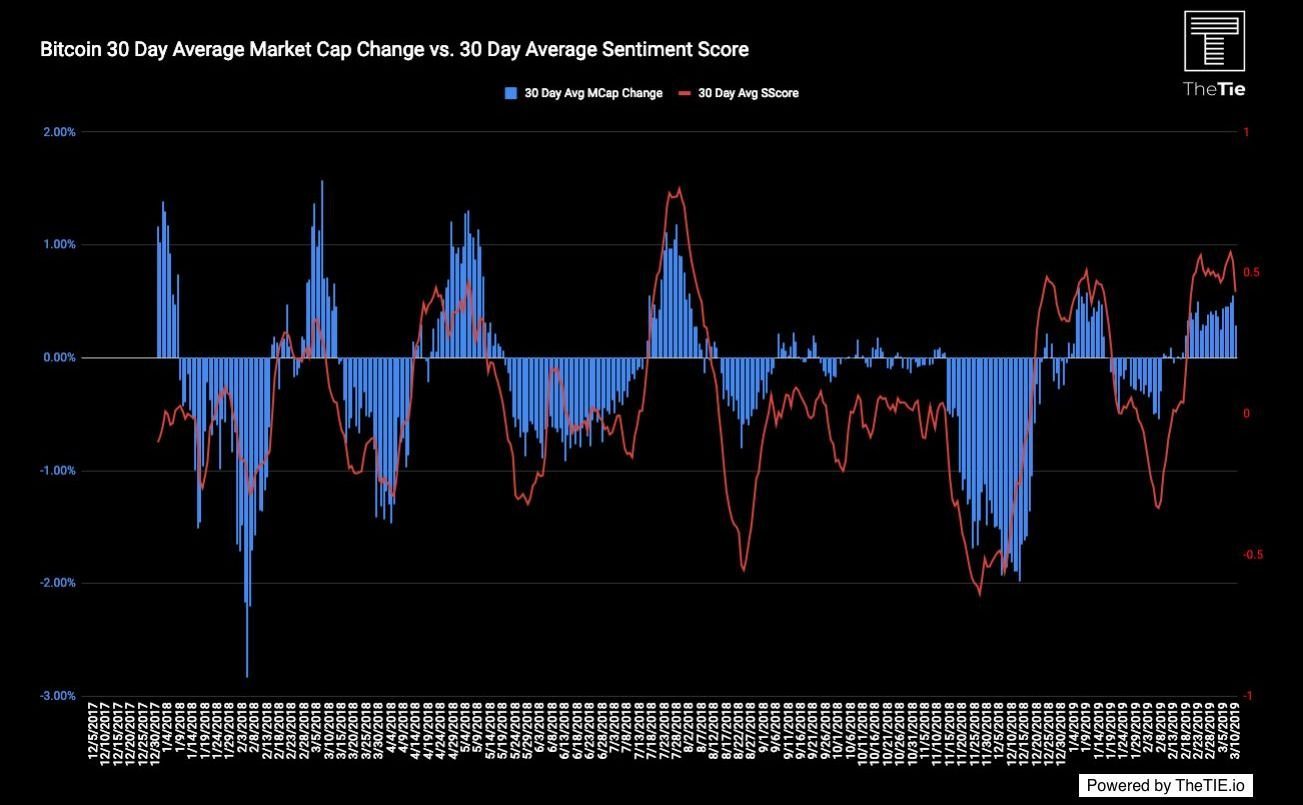 Even with all these developments, bitcoin’s price seems to be facing major resistance at $4,000. However, data from The Tie regarding market sentiment and market cap suggested an interesting correlation.