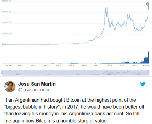 Citing all these reasons and the deflationary characteristics of the Peso, Josu San Martin commented that bitcoin [BTC] was a better store-in-value than Argentina’s fiat currency.