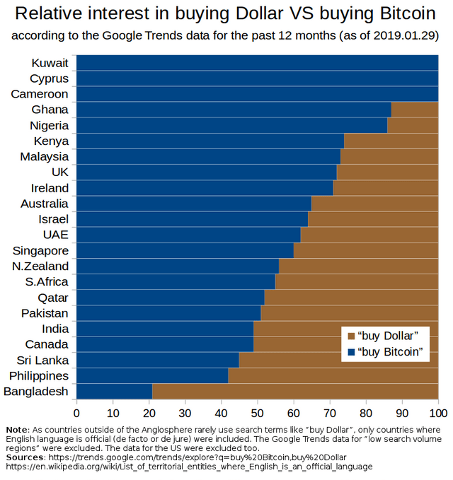 For starters, Google Trends is not a good index to gauge any prospective interest the US Dollar or ₿itcoin may have in any country. It doesn’t have any scientific basis as often, searches are an indication of curiosity, rather than genuine interest in buying or investing in any currency, according to Redditors.