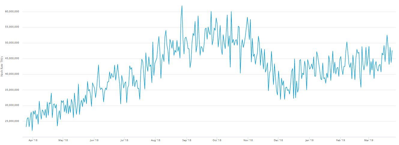 bitcoin’s resurgence in its hash rate was shown recently when it recorded a 4-month high on the charts. On March 19, bitcoin’s hash rate increased to 52 quintillion hashes per second, the highest it had reached since November 2018, when the hash rate spiked to 54 quintillions. The highest hash rate ever recorded in the bitcoin ecosystem was 62 quintillion hashes per second which was achieved in August 2018.