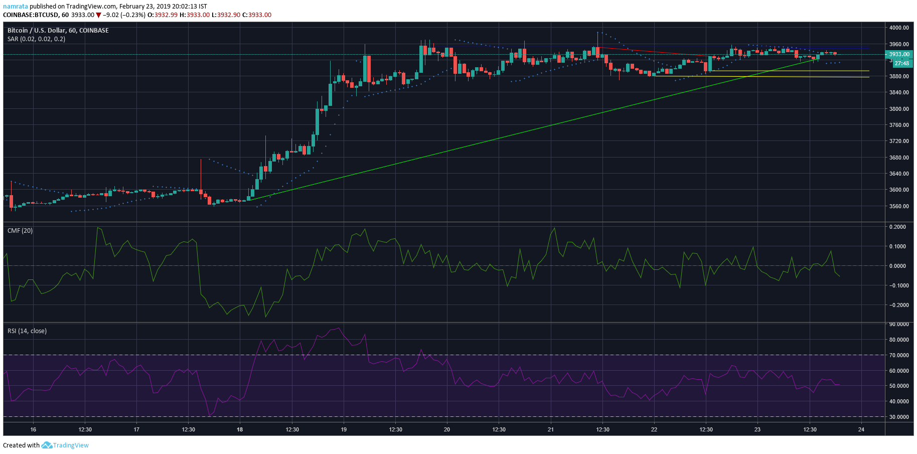 bitcoin [BTC], the largest cryptocurrency in terms of market cap, witnessed a bull run over the week and managed to breach the $3,900 resistance point. The bullish momentum has now stagnated as the cryptocurrency is seeing sideways movement.
