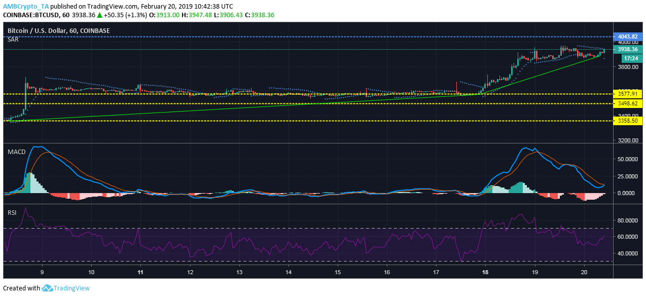 The support lines are seen at $3,358, $3,498, and $3,577 while the next resistance that bitcoin has to break is at $4,043. However, considering the market sentiment, $4,000 could also act as a strong resistance point for bitcoin.