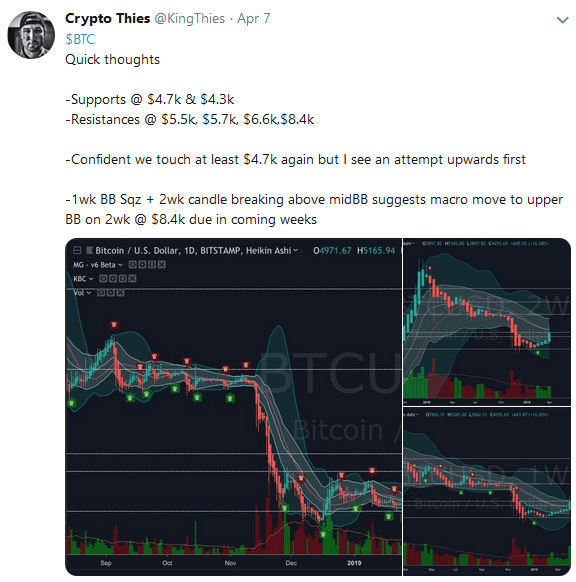 Thies listed out the resistance line of $5,500, $6,600 and $8,400, expecting bitcoin [BTC] to test these resistances in order to breakout or surpass these valuations.