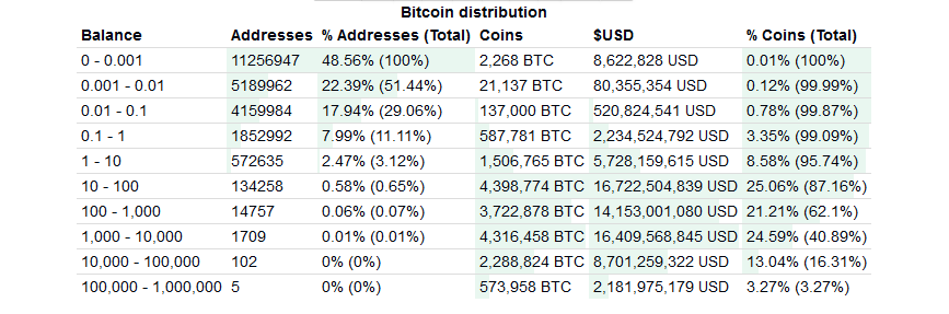 bitcoin Distribution of 26th Feb 2019 | Source: Bitinfocharts