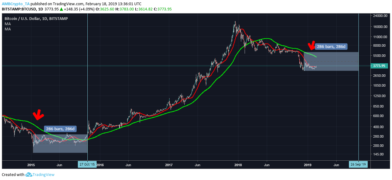 As per the above theory and the history, the golden cross for bitcoin might happen somewhere in the month of September 2019. Although bitcoin won’t perfectly follow the history, considering the 286 days it took for bitcoin to attain the golden cross, the bull run might happen on September 26, 2019.