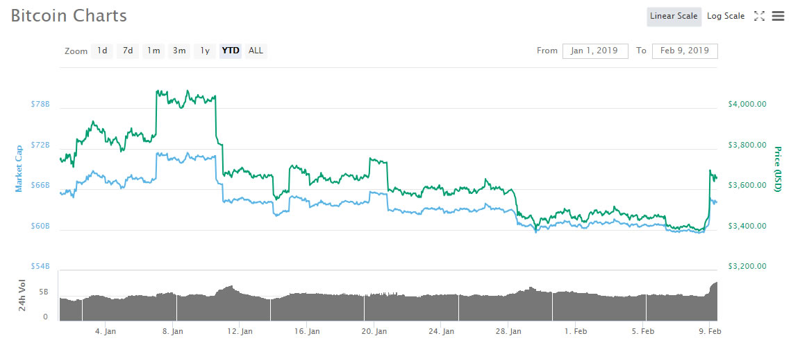 For weeks BTC has been lulling around these levels unable to muster the strength to get past them. Only yesterday when it briefly touched $3,390. The break below $3,400 must have triggered a raft of buy trades which sent BTC surging 9% to reach an intraday high of just below $3,700. Daily volume has surged from $5 billion to $7.8 billion, the highest it has been since the bounce off the bottom in mid-December. BTC is currently holding at around $3,650 at the time of writing.
