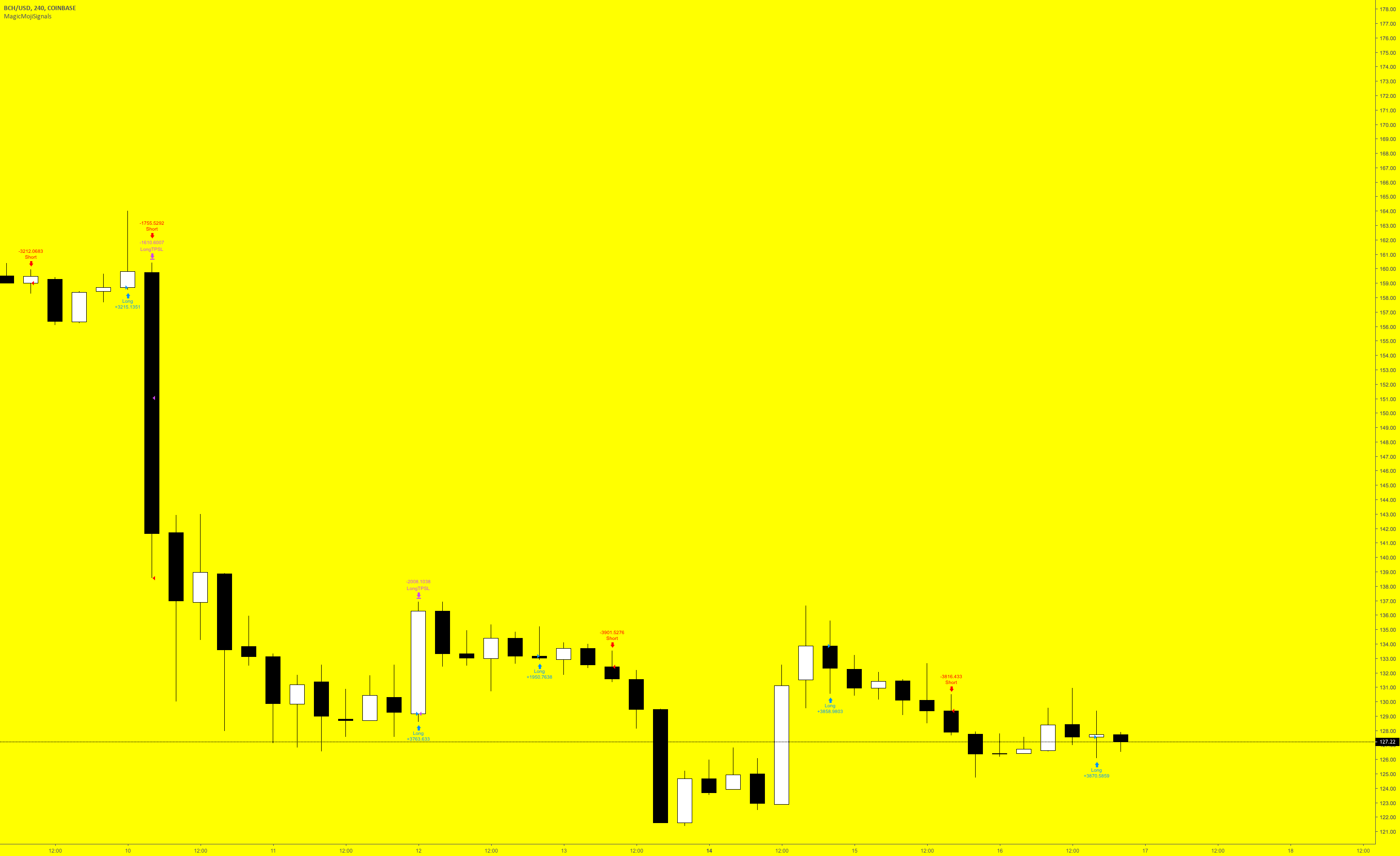 If the most recent arrow is red, you should be short. If the most recent arrow is blue, you should be long.