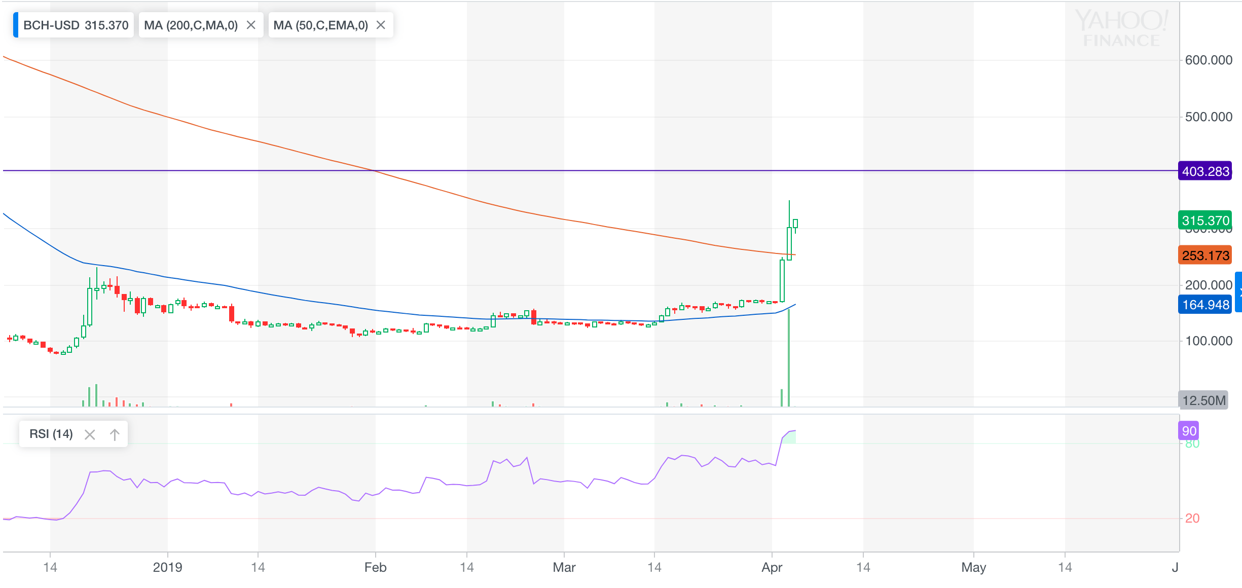 The BCH-to-dollar rate had since Monday morning, leaving its top rival bitcoin behind in terms of overall gains. The pair extended its rally towards $341.66 after the US market open yesterday. Later, it corrected to circa $280 in just two hours – its intraday low.