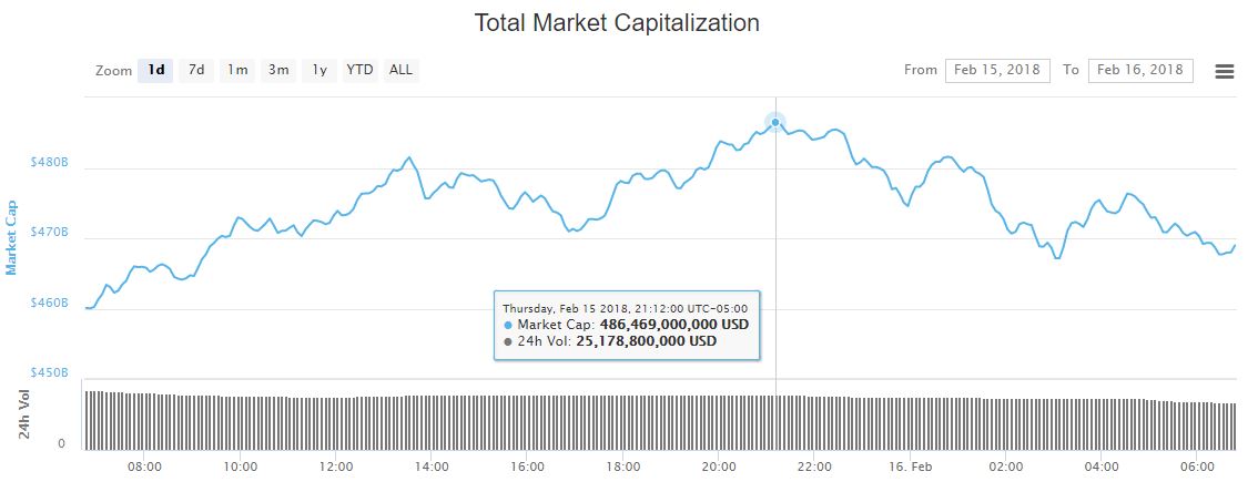 Yesterday, the had reached a pinnacle of $486.5 billion, its highest point since Feb. 1. Unfortunately, the market entered Friday on a downward slope, and the cryptocurrency market cap has since declined to a present value of $471.9 billion.