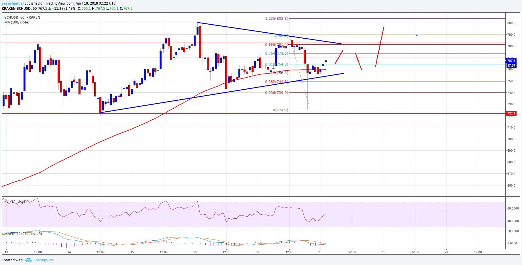 Recently, there was a from the $788 high in bitcoin cash price against the US Dollar. It seems like it was a false break as the price recovered back above $740. The $720 support zone acted as a strong support and the price bounce back above the 50% Fib retracement level of the last decline from the $788 high to $724 low.