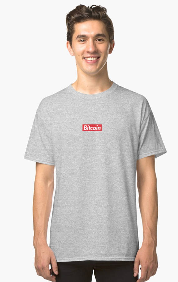 bitcoin has exploded in the past few months, as it has gone mainstream. The hype behind bitcoin is similar to the hype behind the streetwear brand, Supreme. Popularized by Supreme, the box logo is imprinted over a bitcoin logo.