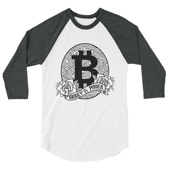 & Cryptocurrency Money Is Power 3/4 Sleeve Raglan Baseball Shirt for Miners