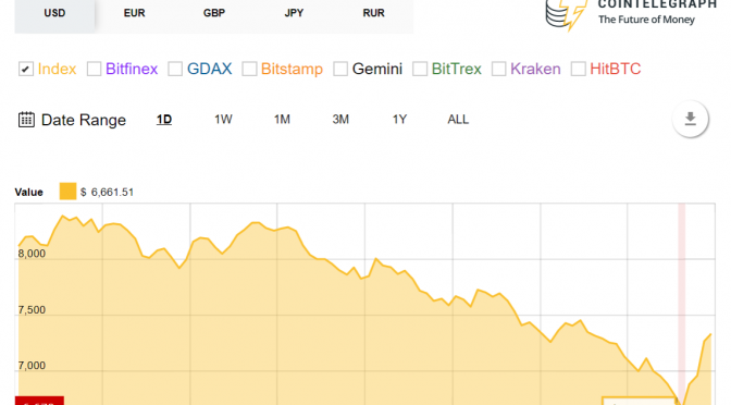 According to price index, BTC reached as low as $ 6,661.51 on Monday, losing at least 11 percent of value in the 24 hours to press time, and about 60 percent over the last 30 days.