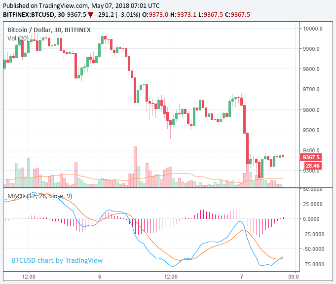 Since then, the bitcoin price has fallen an additional 3 percent to $9,300 and the volume of the cryptocurrency market has dropped by around $3 billion, from $26 billion to $22.9 billion.