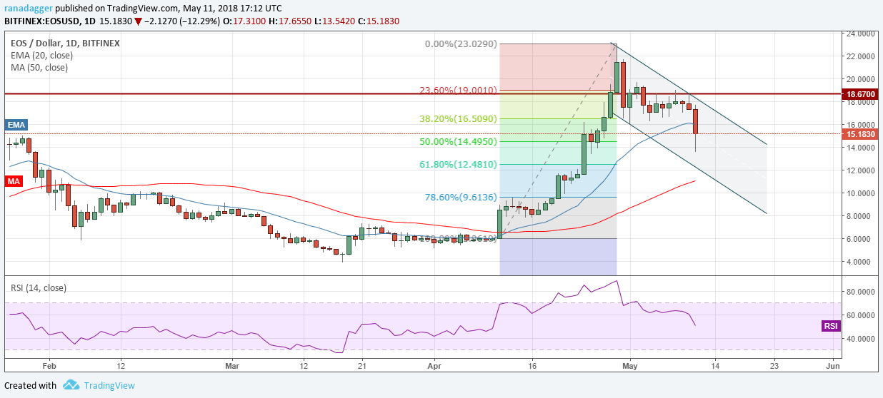 failed to sustain above the $1,600 levels on May 10, resulting in a breakdown below the ascending channel.
